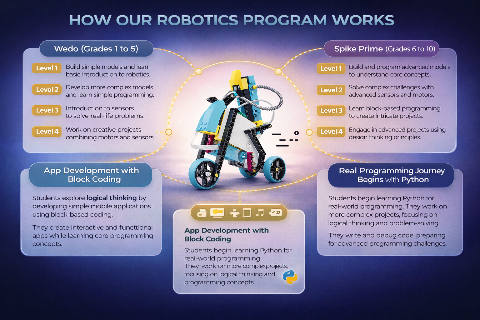 Explorer Bots (9–12): Line-follow & obstacle-avoid challenges.